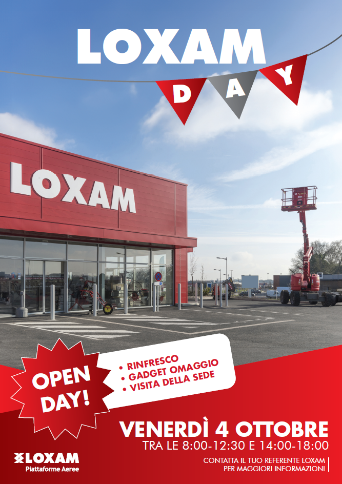 VENERDÌ 4 OTTOBRE, tra le 8:00-12:30 e le 14:00-18:00 visita la sede LOXAM più vicina a te per partecipare al LOXAM DAY.